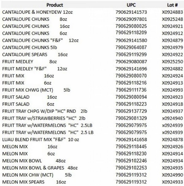 The affected products were sold to distributors in Nebraska, North Dakota, and Wisconsin, and may have been distributed to other states. The cantaloupe was marketed under the "Harvest Cuts" and "Fresh and Finest" brands at traditional grocery outlets. Products were packaged in plastic clamshell containers and included both cantaloupe-only packs and mixed fruit containers containing cantaloupe.