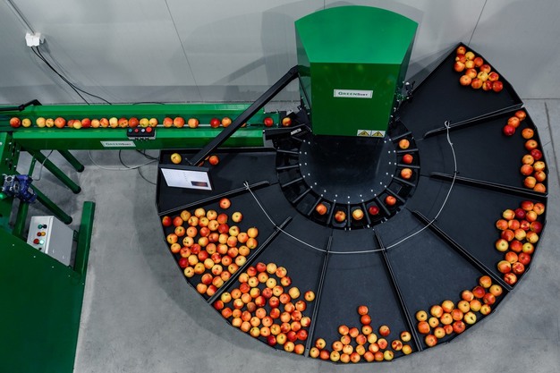 "The Green Sort optical sorter is a response to market needs. The device measures fruit size and analyzes color and damage. The heart of the machine sorts apples by diameter, color, and damage, with a throughput of 1,200 to 2,500 kilograms per hour. Customers can choose a more affordable version with a traditional tipper or water unloading. From the outset, a modular design was chosen, which, on the one hand, ensures a small footprint and, on the other, allows for installation in a variety of spaces. This makes it an ideal solution for smaller farms."