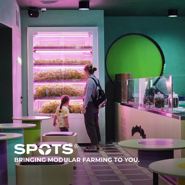 Building on the success of the original farm, Tusya launched Spots by SpaceFarms— compact, fully automated vertical farms designed to fit anywhere. Each Spot takes up just 2 square meters and can produce 10–15 kg of greens per month. "They're perfect for restaurants, hotels, apartment buildings, even industrial spaces," Tusya explains. "We provide the seedlings, and one of our technicians visits twice a week to keep everything running smoothly."
