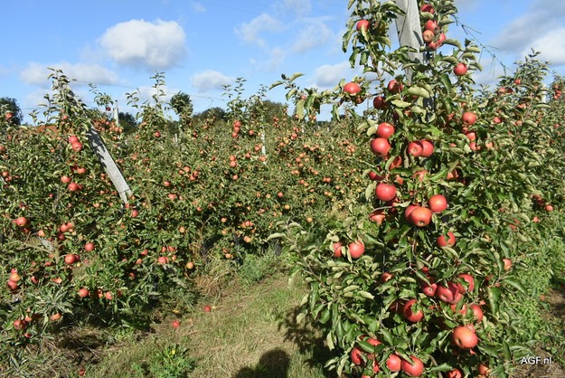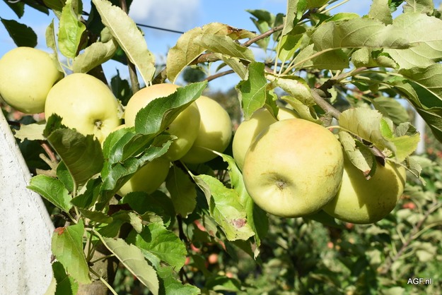 In organic top fruit growing, there has been a lot of talk recently about switching to more resistant varieties. "Important," Gunther assures. "But we should not make it the only focus. After all, no variety is perfect. With diseases like scab, for example, you see that resistance does not last forever: the disease adapts. Monoculture makes crops very vulnerable. Moreover, new varieties require years of experience before growers know how to work with them. That is why variety is essential. We see this here on Bert's farm, which has planted a wide range of varieties. He also does trials with new varieties. This spreads the risks and also brings benefits in harvest timing. Indeed, you see that in a year like this, it is difficult to get the crop off the trees on time."