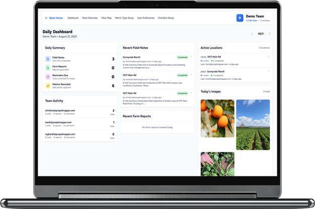 "PropelMapper's approach is elegantly simple," she explains. "After completing a farm visit or facility inspection, users record voice notes, describing what they observed, discussed, and planned. The platform's artificial intelligence then transforms these recordings into structured, professional reports complete with visit summaries, follow-up items, metrics, charts, and photos."
